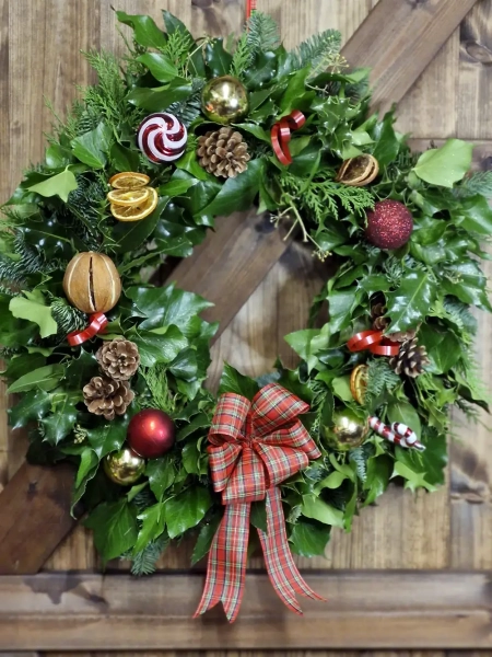 Add a touch of elegance and seasonal charm to your home with our 20″ luxury door wreath. Expertly handcrafted using a stunning blend of fresh, aromatic winter foliage, this wreath is designed to create a warm and inviting welcome for you and your guests.