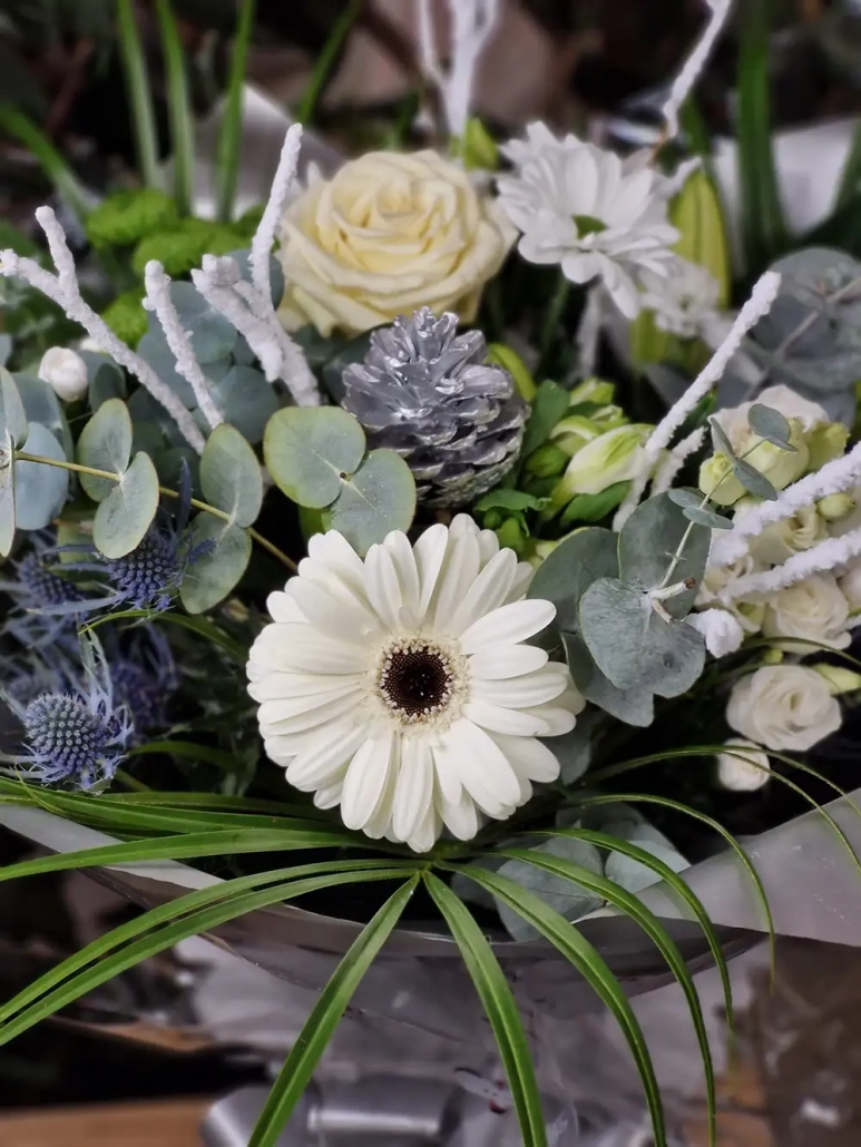 Embrace the winter season with Jack Frost, a luxurious bouquet of blooms in elegant shades of white, green, and silver. This trending favourite is carefully arranged to evoke the serene beauty of frosty mornings. Presented in a bubble of water for lasting freshness and nestled in a stylish gift box, it makes the perfect gift to add a touch of winter magic to any home.