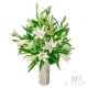 A fresh and tasteful handtied Bouquet of premium flowers. The finishing touch of elegant gift wrapping completes this luxurious Bouquet. The design is presented in a round vase which makes this the perfect gift.